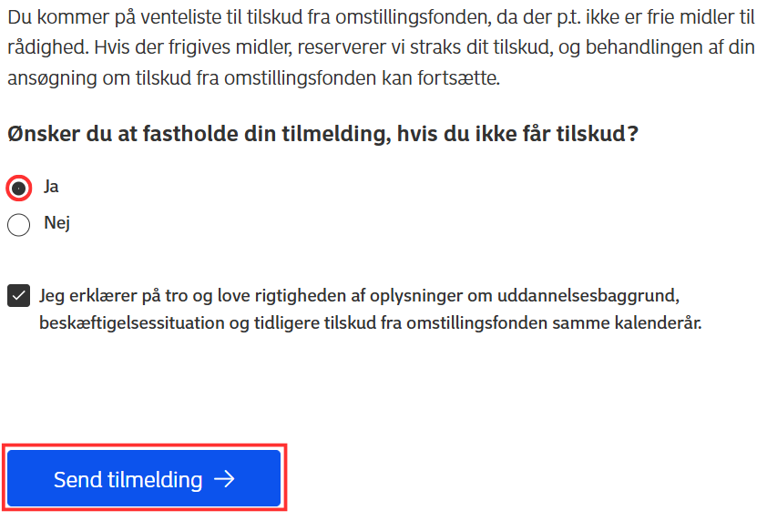 5. Hvis du IKKE har modtaget tilskud fra Omstillingsfonden det samme kalenderår, udfylder du sådan her: