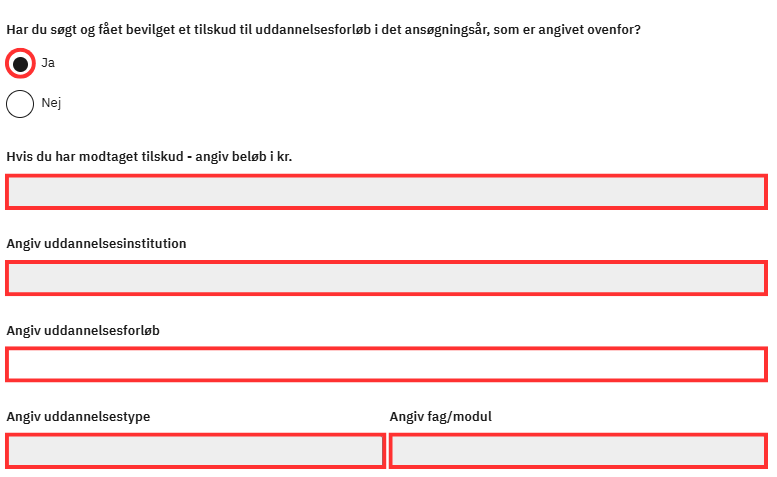 Angiv modtaget tilskudsbeløb: Her skriver du det beløb, du har modtaget, f.eks. 4.500 kr. (kvittering og beløb fik du tilsendt ved sidste uddannelsesforløb i din Digital Post / e-Boks)