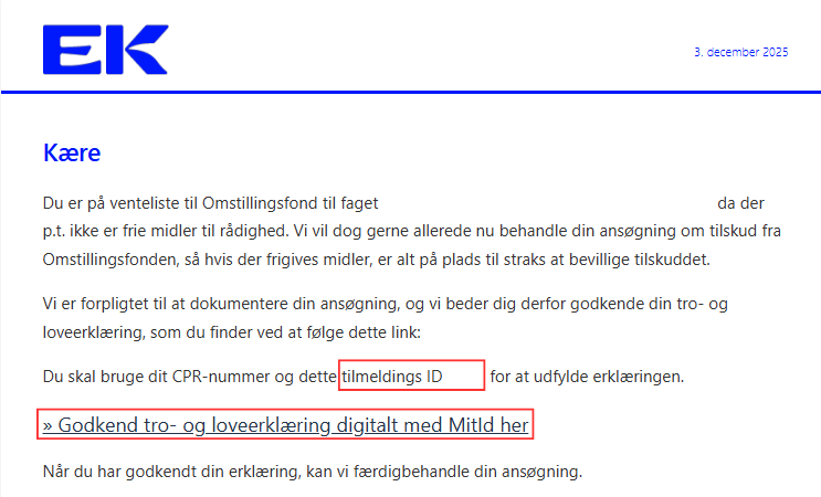 10. Du vil modtage beskeden i Digital Post / e-Boks ”Omstillingsfond tro- og loveerklæring skal godkendes”