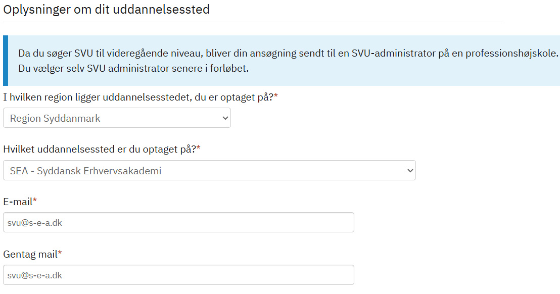 *Du må ikke have afsluttet en kort videregående uddannelse som serviceøkonom, en erhvervsakademiuddannelse eller f.eks. en bachelor. En erhvervsuddannelse som tjener eller kok er derimod ikke en videregående uddannelse, og du er derfor berettiget til at søge om SVU, så længe du opfylder de andre krav.